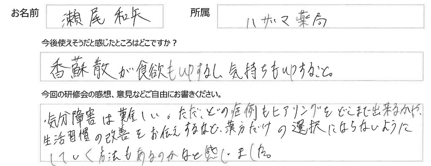 第1期日在薬OTC漢方薬販売セミナー【気分障害編】
