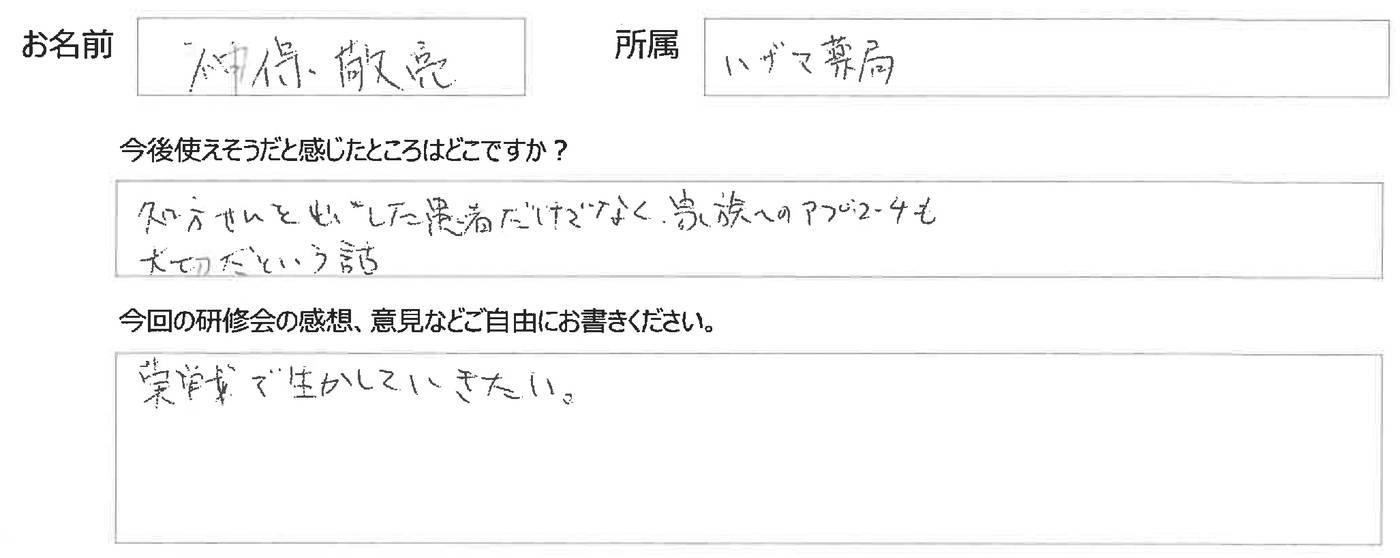 参加された皆様のナマの声を掲載しておりますのでこれから受講を検討されている皆様、ご参考にしていただければ幸いです。