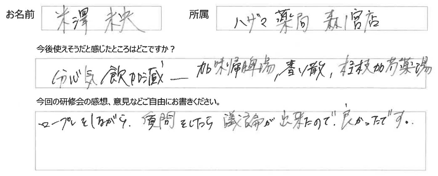 【第1期日在薬OTC漢方薬販売セミナー3回目】
