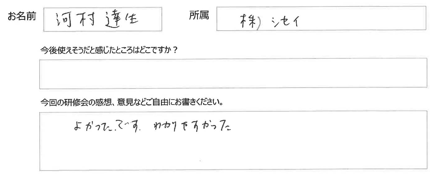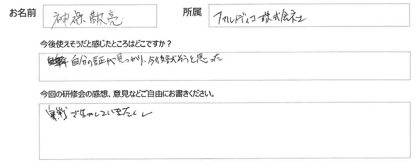 参加された皆様のナマの声を掲載しておりますのでこれから受講を検討されている皆様、ご参考にしていただければ幸いです。