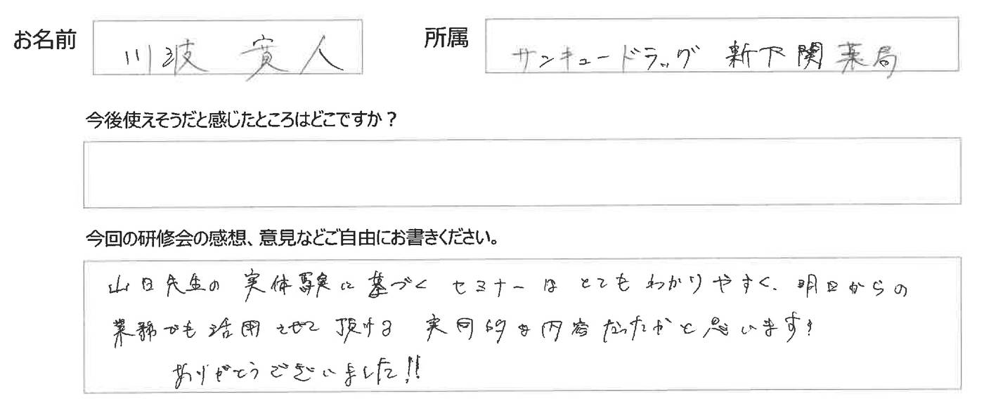 とても盛り沢山で、充実したとても素晴らしいOTC漢方薬販売セミナーで嬉しい限りでした。