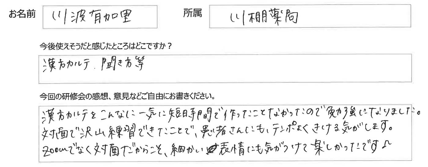 ❸漢方相談カルテの実践的な使用法の練習