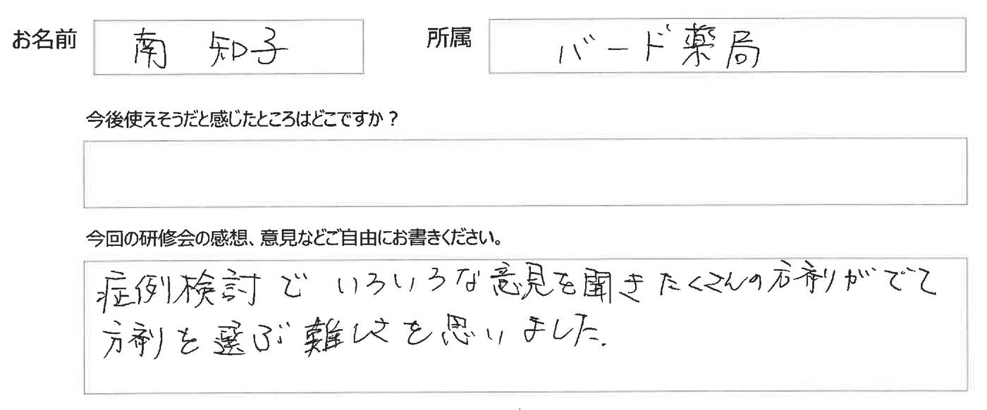最後のプログラムは「OTC漢方薬販売実践演習2例」です。熱心な皆々様に感服しています♪♪