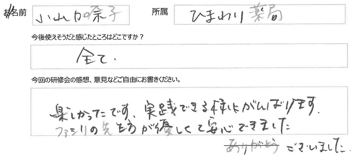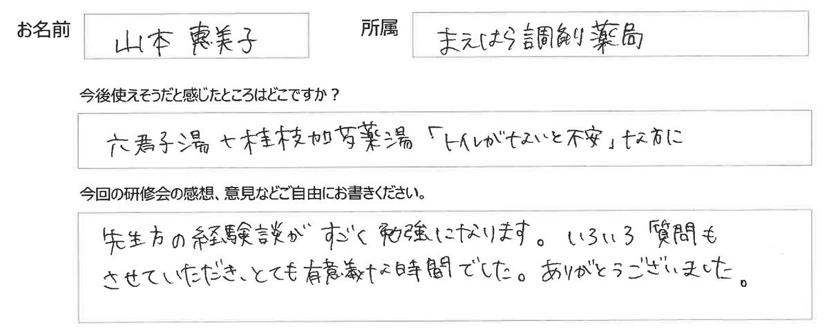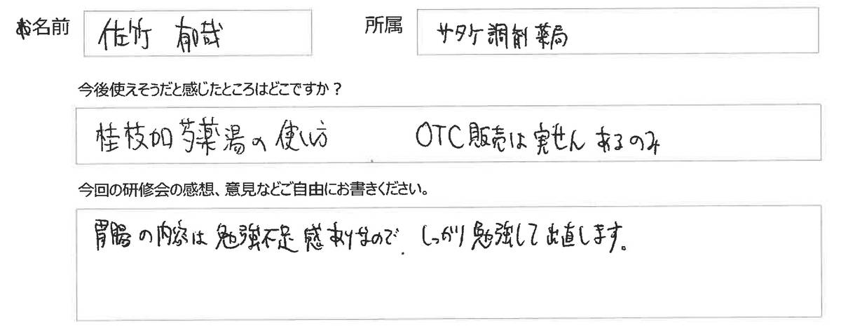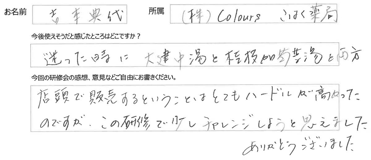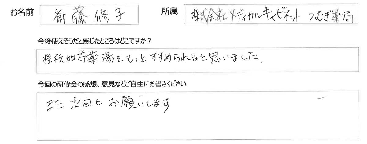 次回もぜひ日在薬OTC漢方薬販売セミナーをよろしくお願い申し上げます。