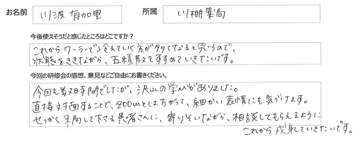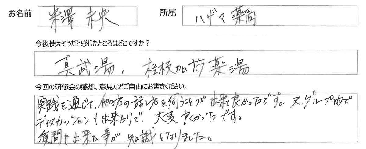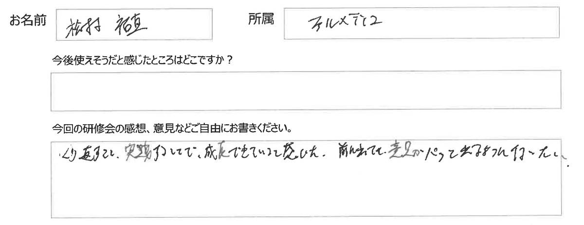 参加された皆様のナマの声を掲載しておりますのでこれから受講を検討されている皆様、ご参考にしていただければ幸いです。