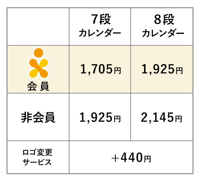 ※7段と8段のカレンダーを同時にご注文いただくことはできません。お手数ですが別々にご注文ください。