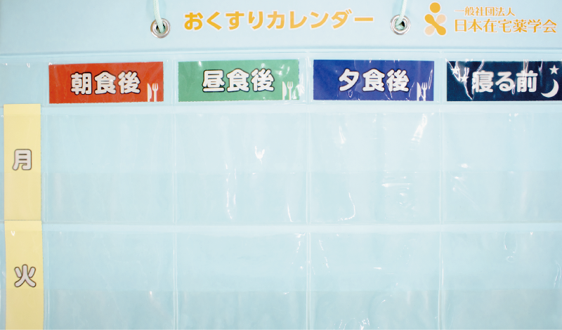 おくすりカレンダーPROの右上に記載されている日本在宅薬学会のロゴをご購入者様ご希望のロゴに変更できるサービスです。
