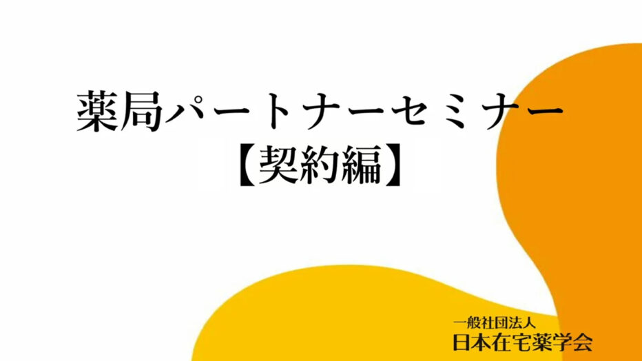 薬局パートナーセミナー(在宅編)では【心構え編】、【業務編】、【契約編】の全3回シリーズとなります。