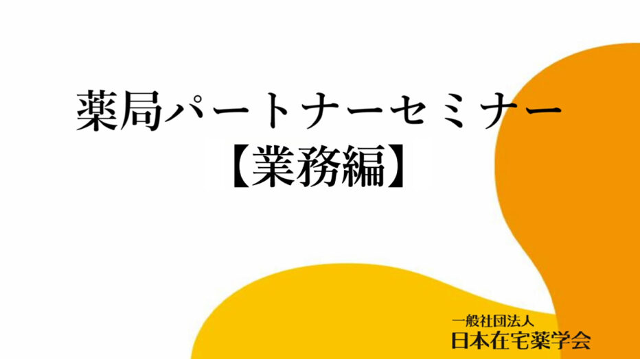 2024年12月7日(土)開催 薬局パートナーセミナー(在宅編)【業務編】 講師:崎山 勝弘 開催地:オンライン