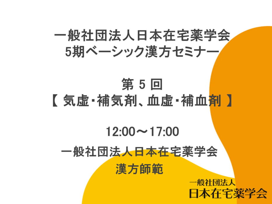 2025年4月13日(日)開催 第5期ベーシック漢方セミナー(オンラインC)5回目 講師:中村 吏志/原 健二/渡辺 智也    開催地:オンライン