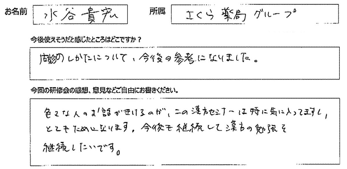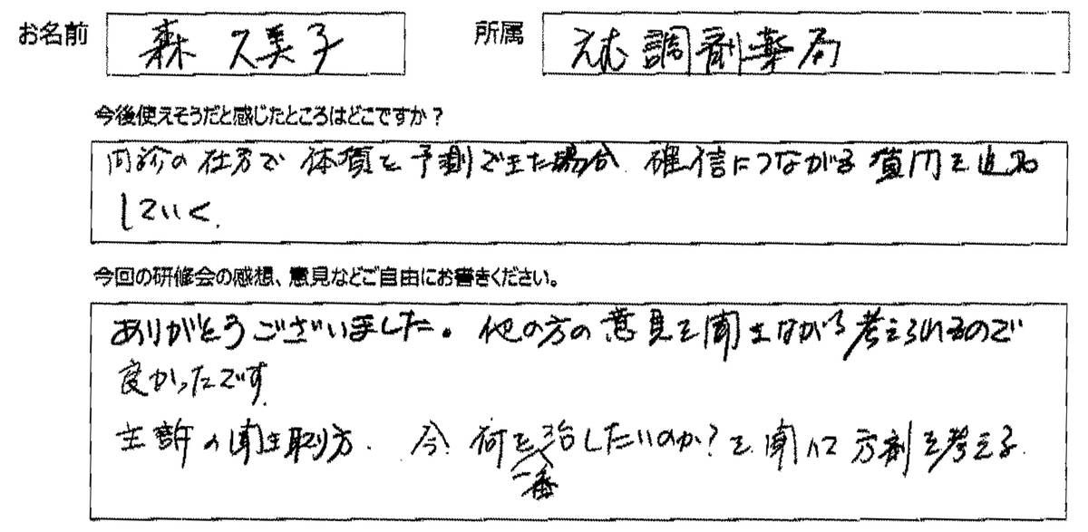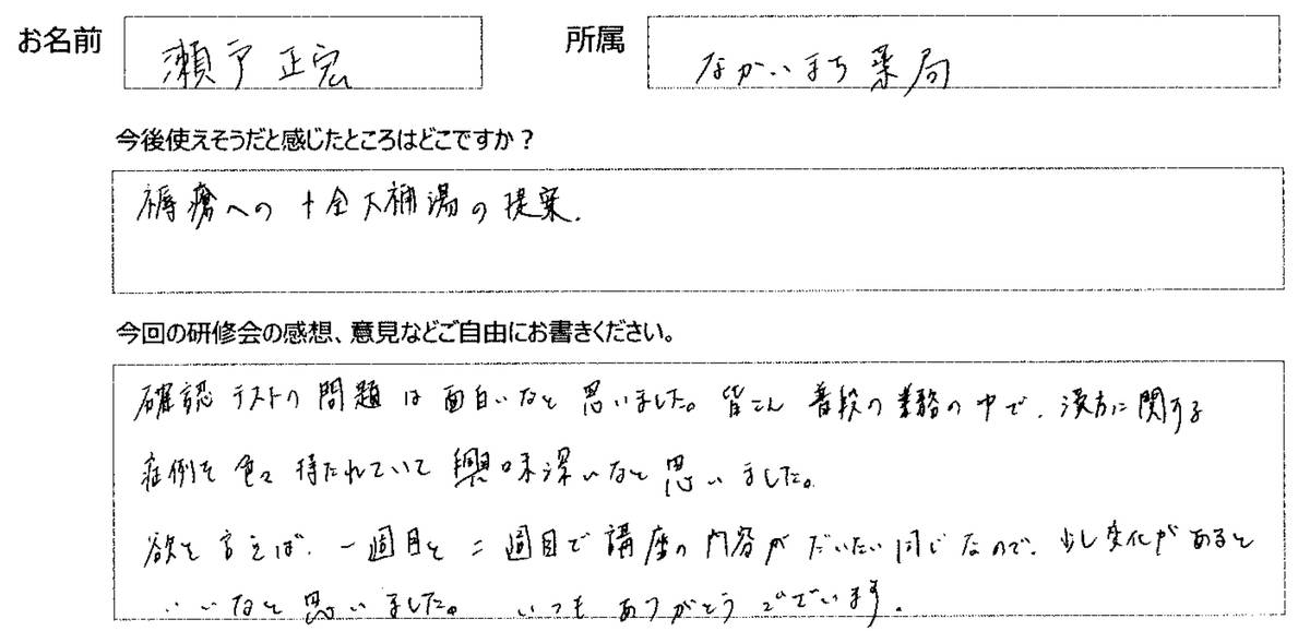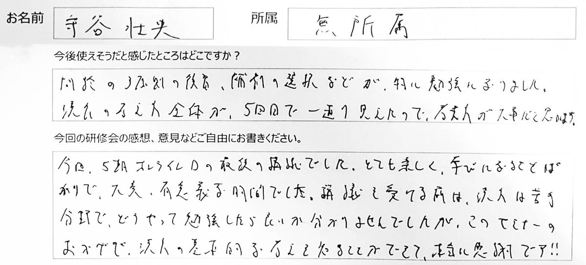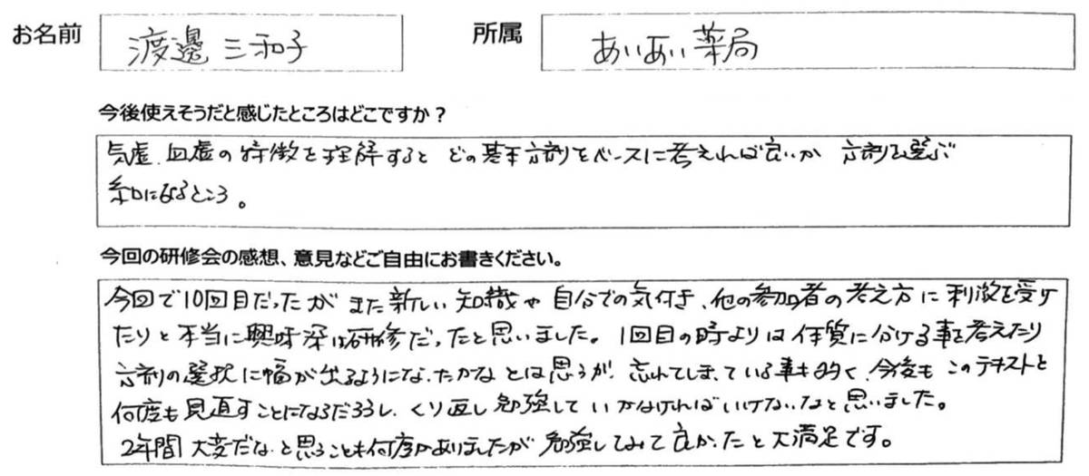 参加された皆様のナマの声を掲載しておりますのでこれから受講を検討されている皆様、ご参考にしていただければ幸いです。