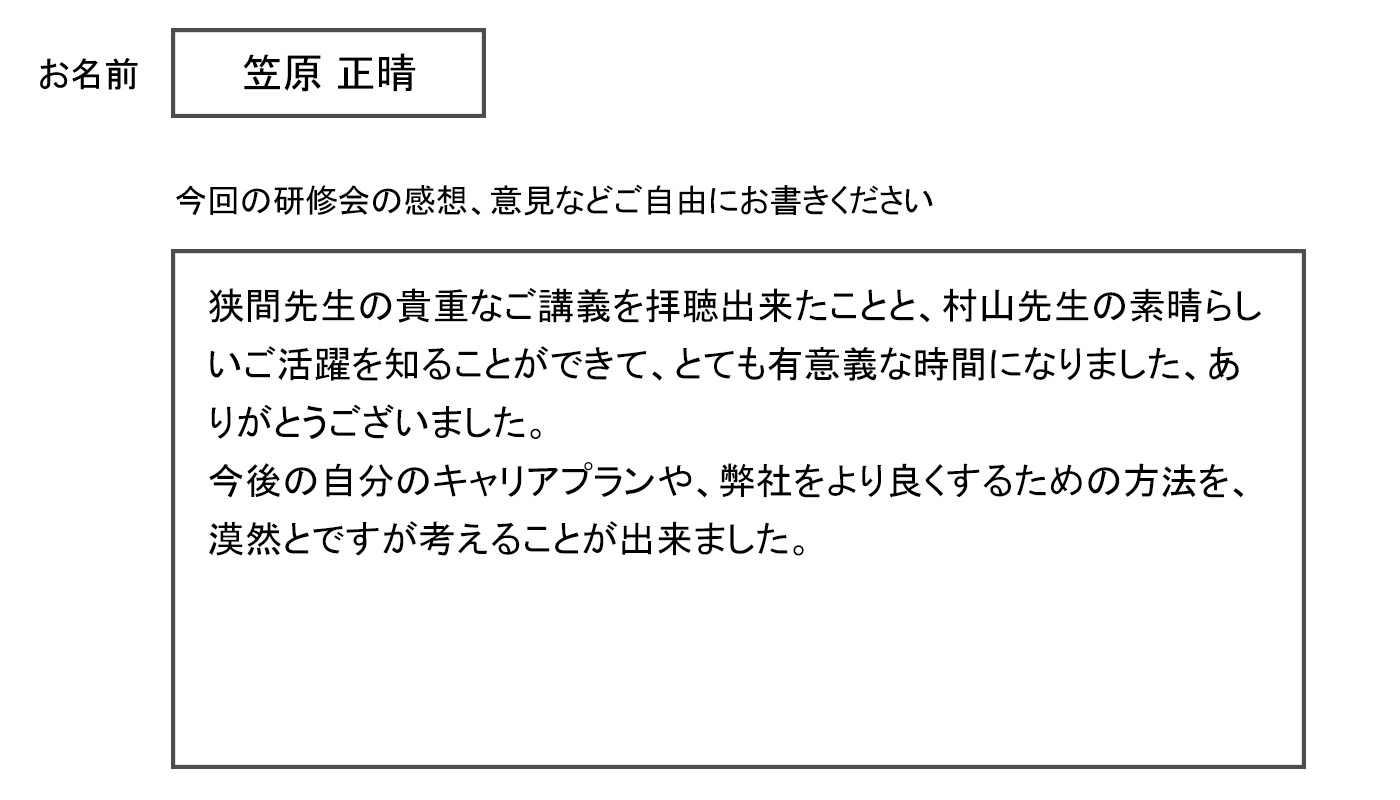 参加された皆様のナマの声を掲載しておりますのでこれから受講を検討されている皆様、ご参考にしていただければ幸いです。