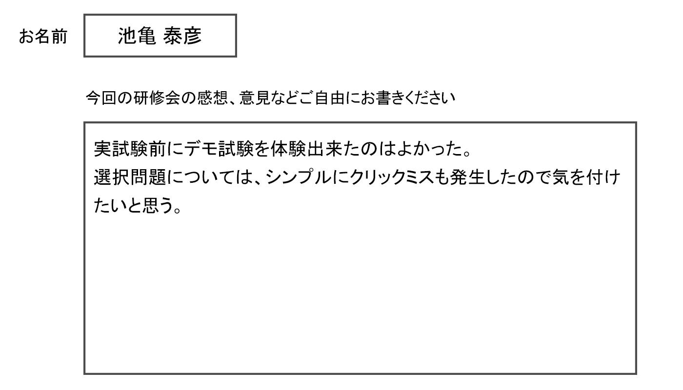 参加された皆様のナマの声を掲載しておりますのでこれから受講を検討されている皆様、ご参考にしていただければ幸いです。