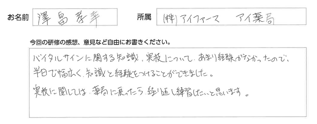 2025年3月2日(日)開催 バイタルサイン/ディレクター講習会 講師:安澤 泰永 開催地:さいたま市大宮区