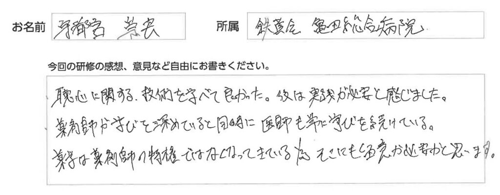 講習後も熱心に質問してくださる方もおり、今後インストラクターを目指していただけるのではないかと期待します。