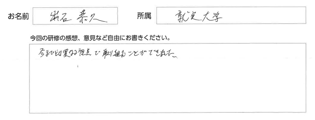 講義でお伝えしたことを忘れずに、現場でしっかり活かして頂くことを期待します。