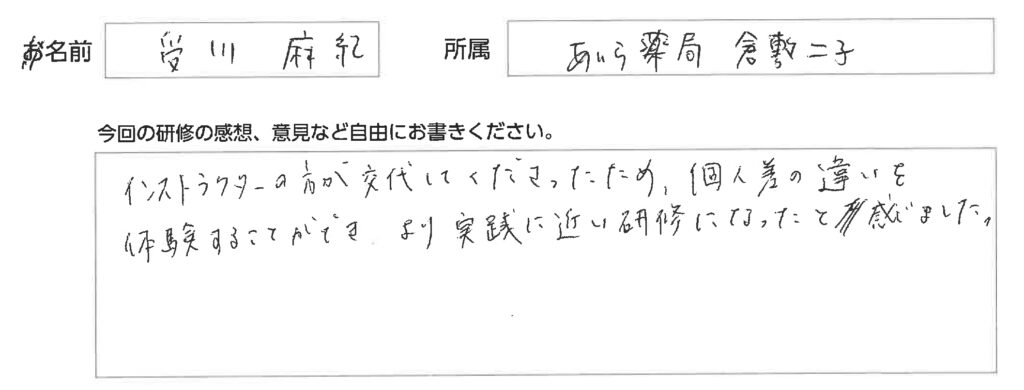 きめ細かなフォローのおかげで、受講者の皆さんも安心して実技に取り組んでいただけたと感じています。