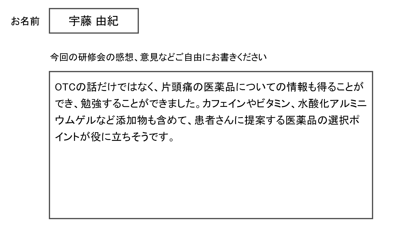 OTC薬は、プライマリケア、セルフメディケーションのツールとして、地域の医療システムの中では重要な役割を担っています。薬局、ドラッグストアで、OTC薬を取り扱う薬剤師は、地域医療の入り口をあずかる者としての意識と責任と能⼒が不可欠です。また、OTC薬でセルフメディケーションを⽀援する薬剤師には、OTC薬が妥当とされる患者と、受診勧奨や緊急対応などを要する患者を適切に判断すること、すなわち、臨床判断の能⼒を⾝に付ける必要があると考えています。