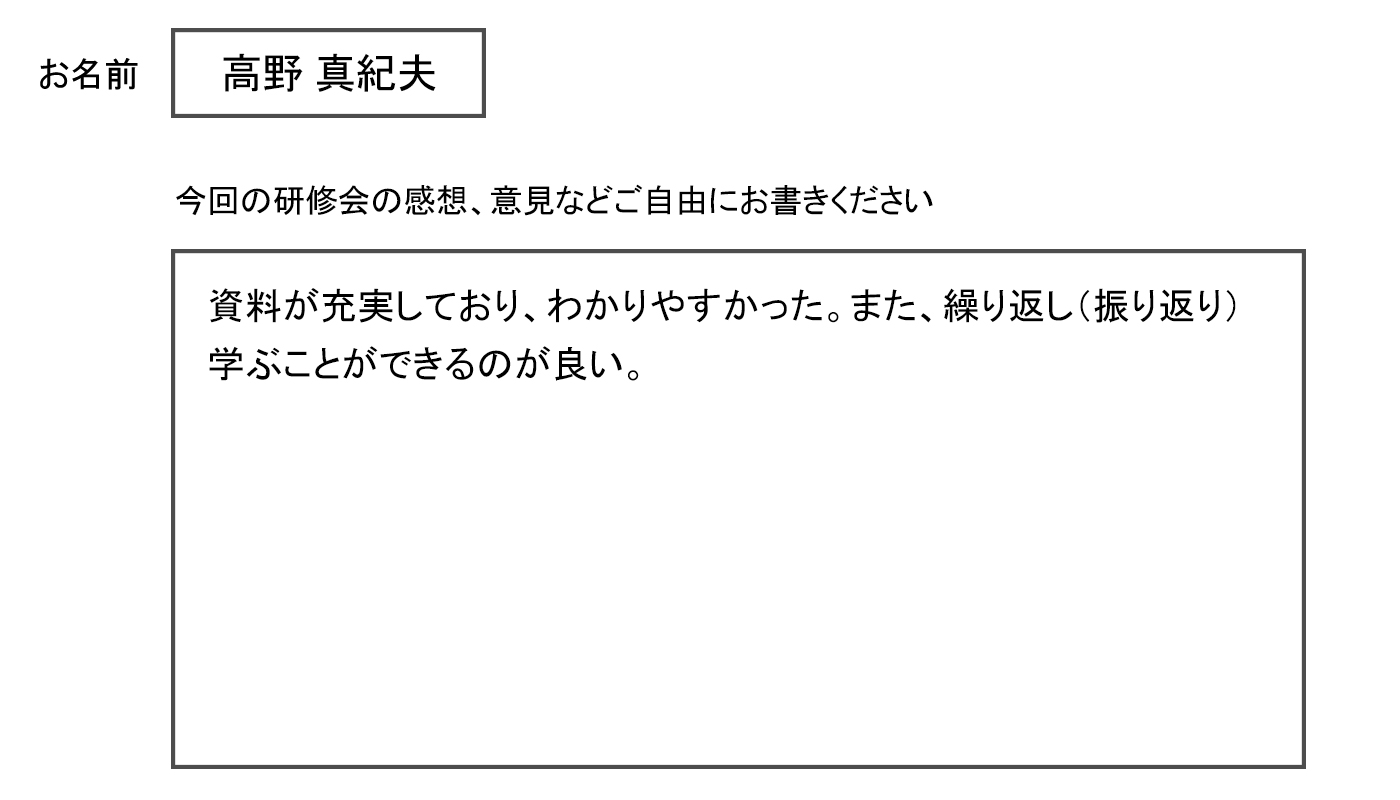 参加された皆様のナマの声を掲載しておりますのでこれから受講を検討されている皆様、ご参考にしていただければ幸いです。