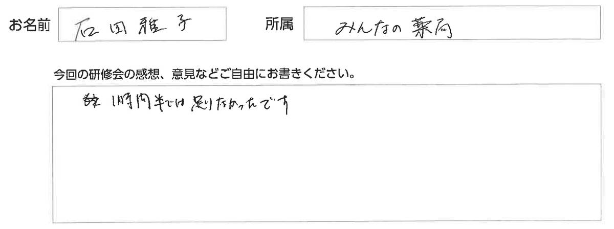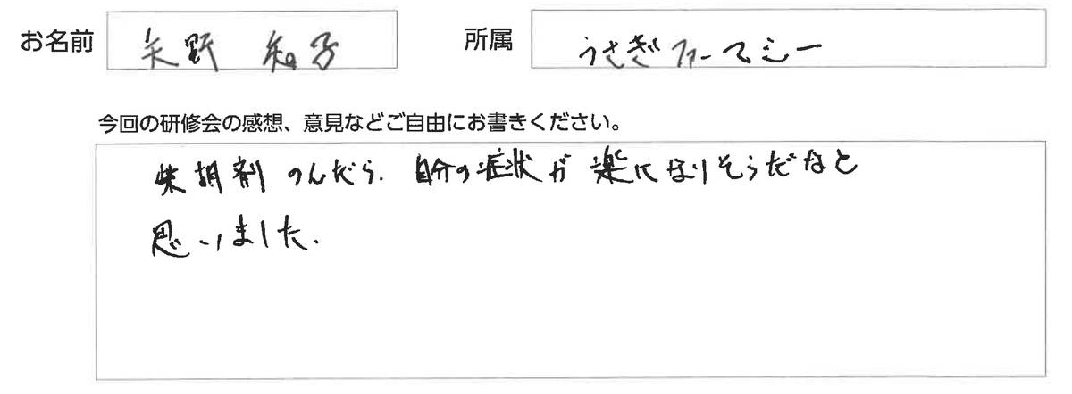 一般社団法人日本在宅薬学会漢方研究会 狭間紀代