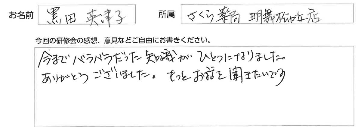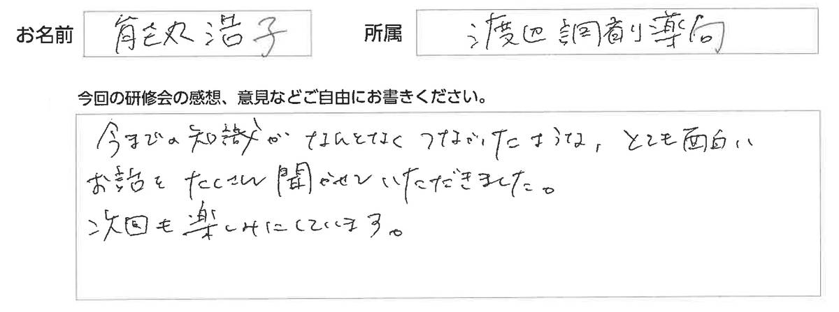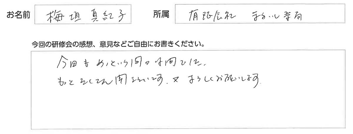 参加された皆様のナマの声を掲載しておりますのでこれから受講を検討されている皆様、ご参考にしていただければ幸いです。