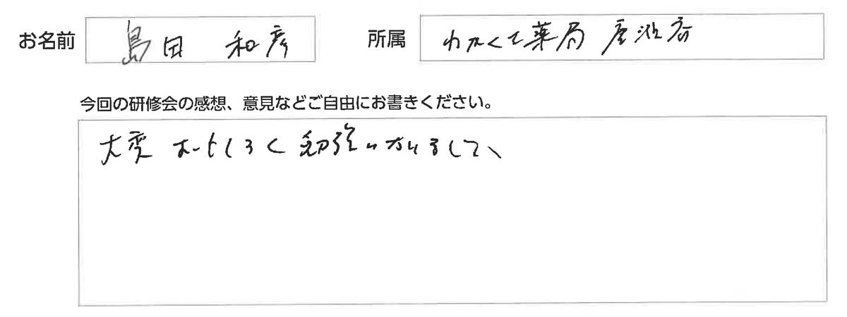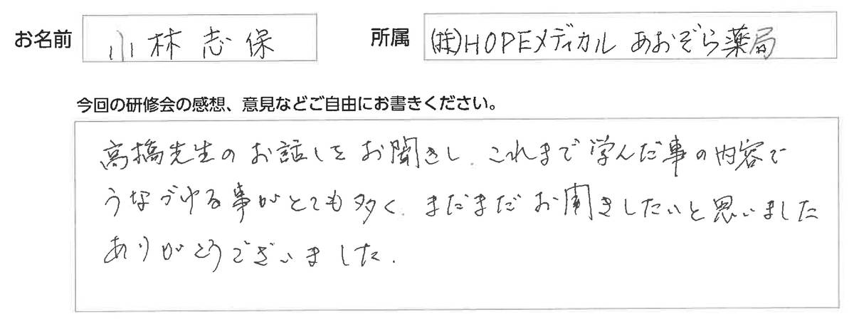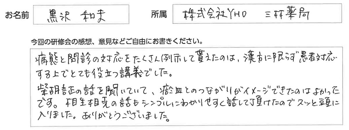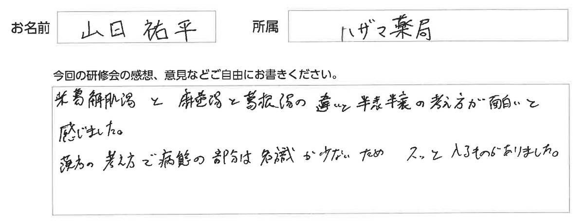 「日本在宅薬学会漢方セミナーを受講後に、この高橋宏和先生のセミナーをご受講になられますと尚一層分かり易く詳しくなって参りますね」