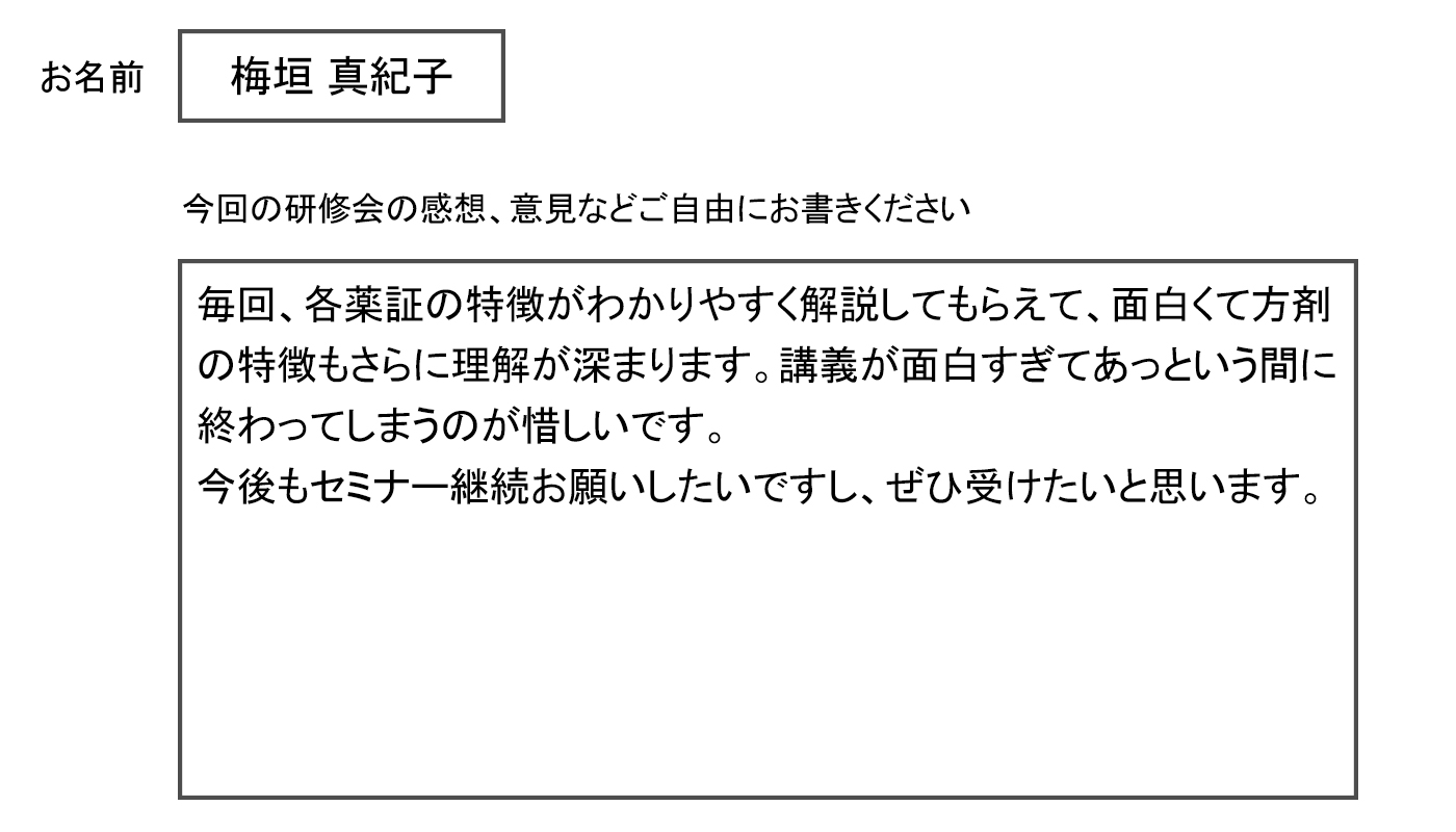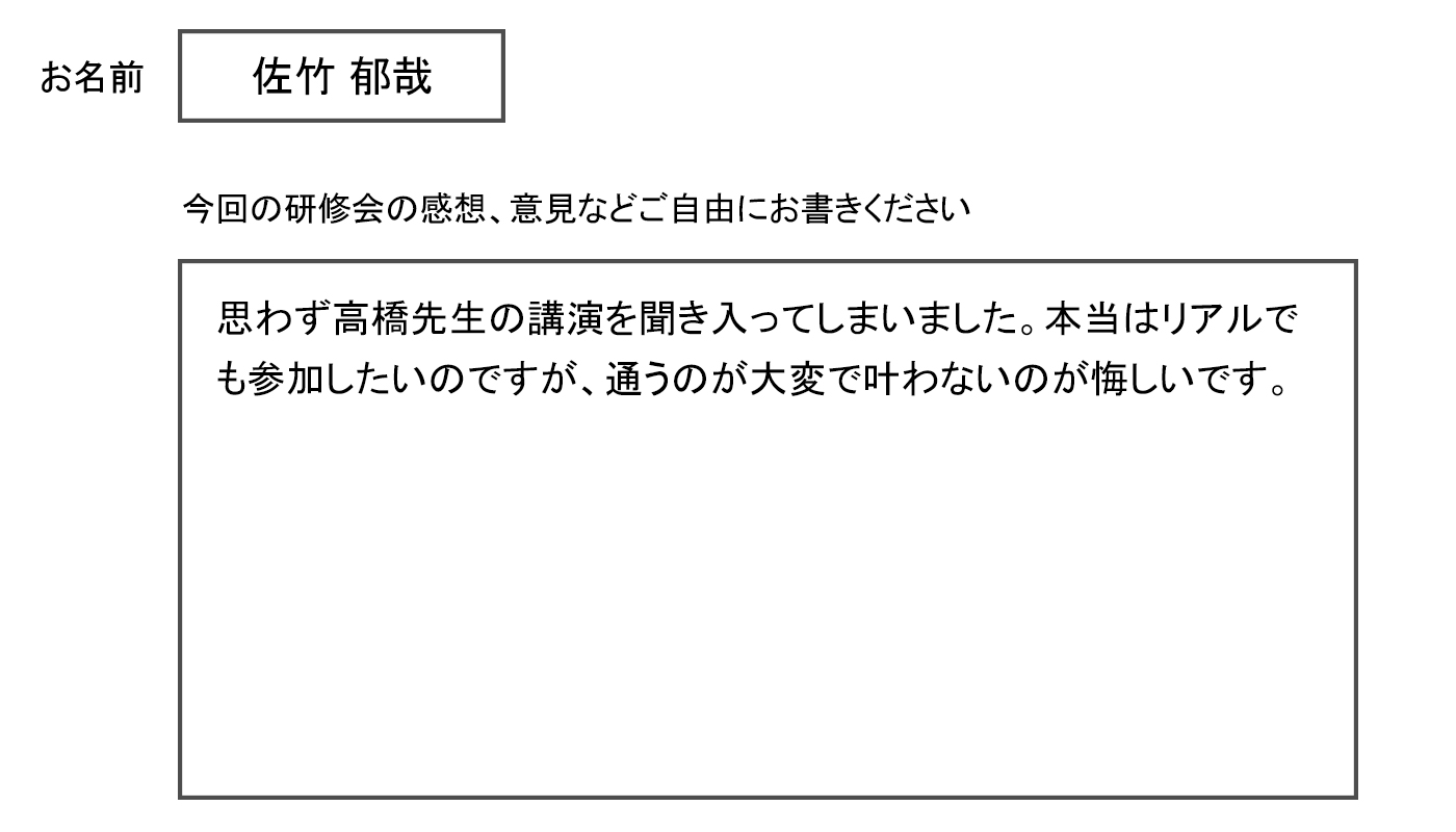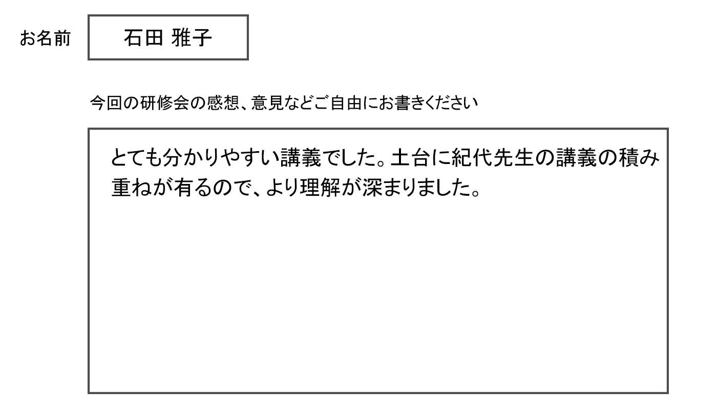 参加された皆様のナマの声を掲載しておりますのでこれから受講を検討されている皆様、ご参考にしていただければ幸いです。