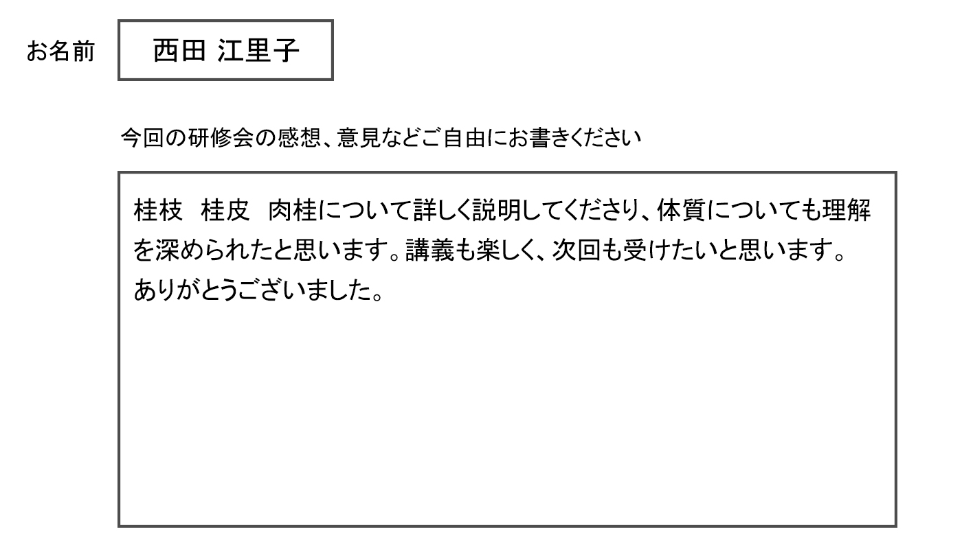 第3回目は4回シリーズの中の唯一オンラインのZoom開催で「桂枝証と桂枝類方」でございました。とてもわかりやすく、かつ熱い90分間のセミナーとなりました。